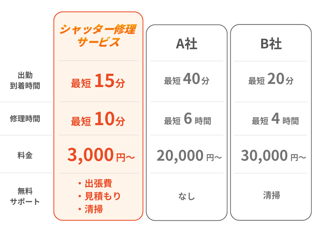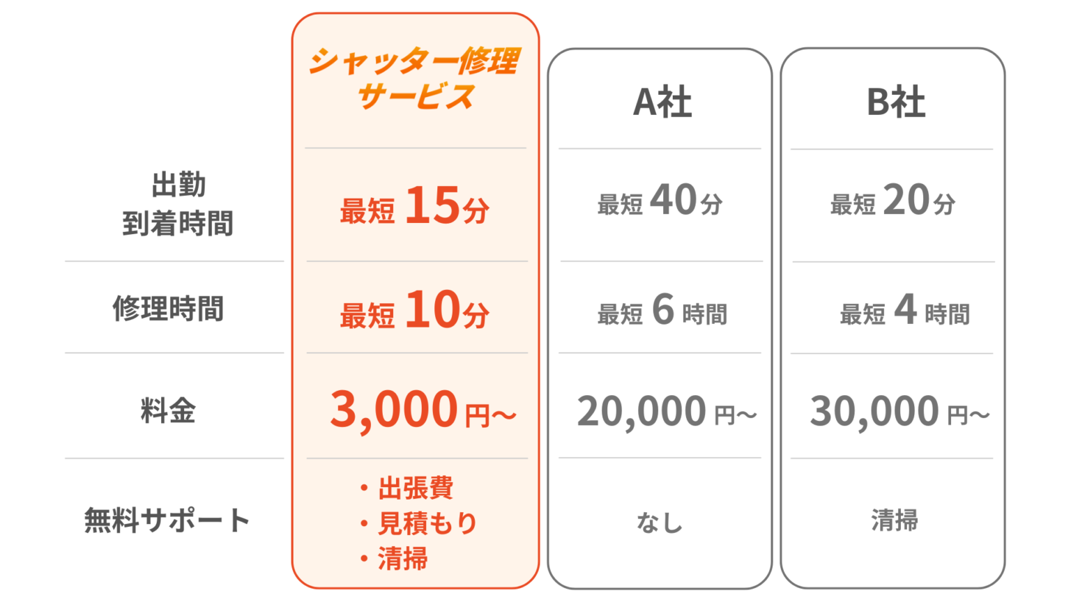 お店のオープン前に急にシャッターが開かなくなって一時はどうしようかと思いましたが、電話一本ですぐに駆けつけてくれて、何とかお店のオープンに間に合いました!ありがとうございます!